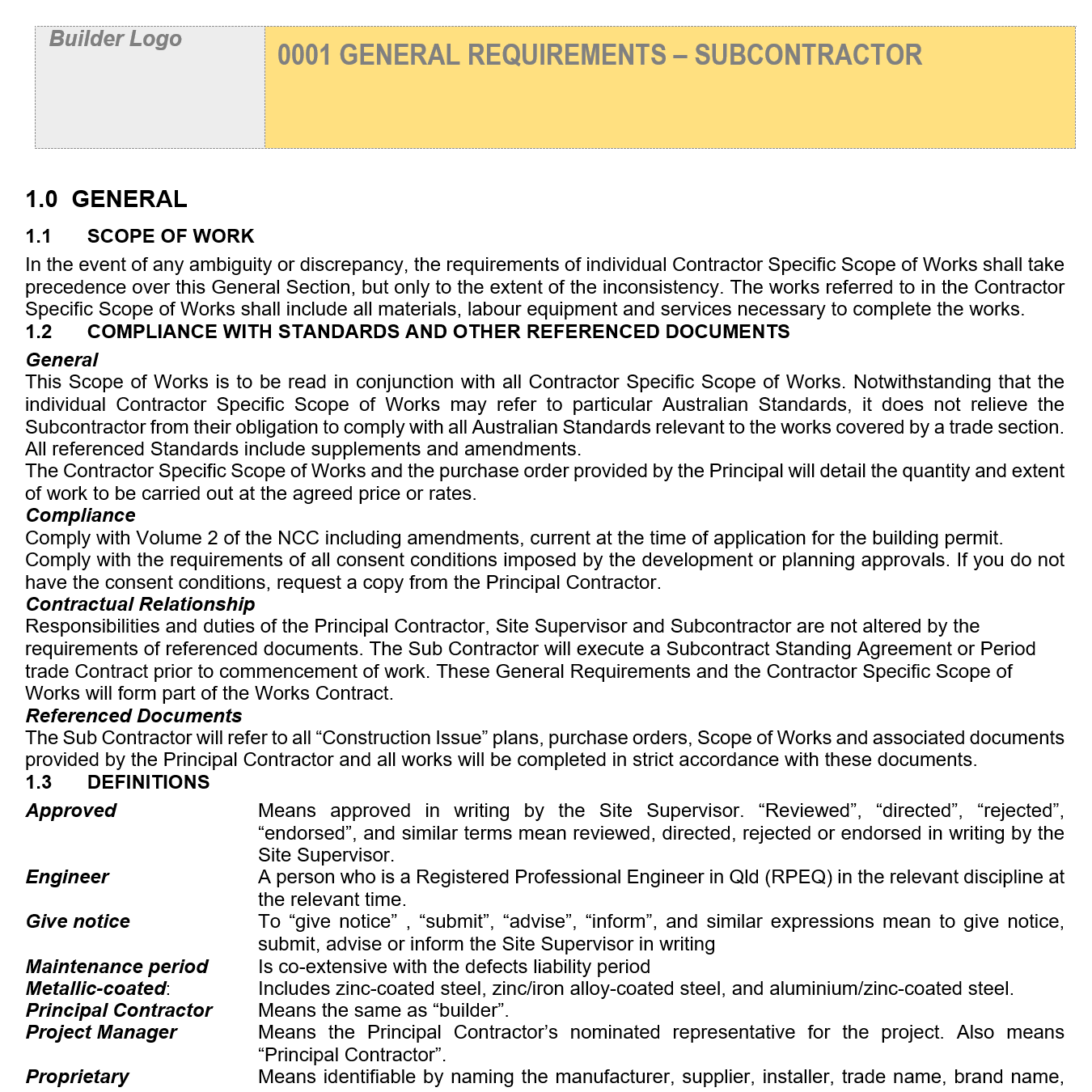 A good Scope of Work document will reinforce to your contractors that your company is also a professional business and clearly understands its quality standards. It will also ensure there is consistency across multiple contractors carrying out the same work.