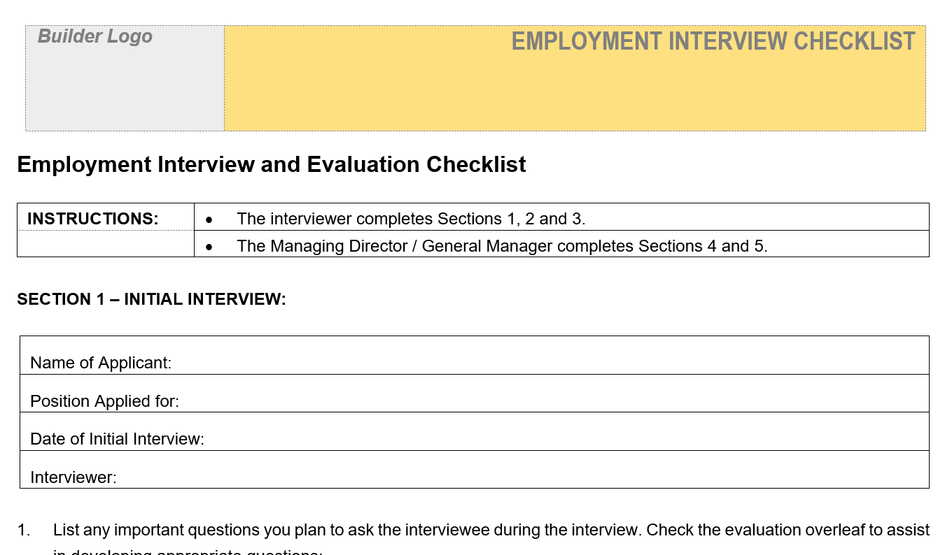 Checklist - 09.06 Employee Interview Record and Checklist