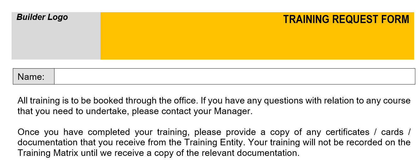 If you have a culture of training for your staff then you will need to have a form that enables them to request training so that you have an idea of what type of training, why it is needed, when it is ti occur and the cost.