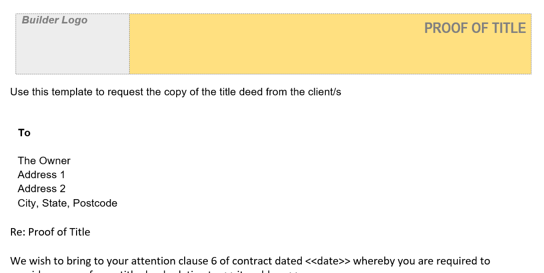 This template letter is for use when requesting Proof of Title from the Owner of the land to be built on.
