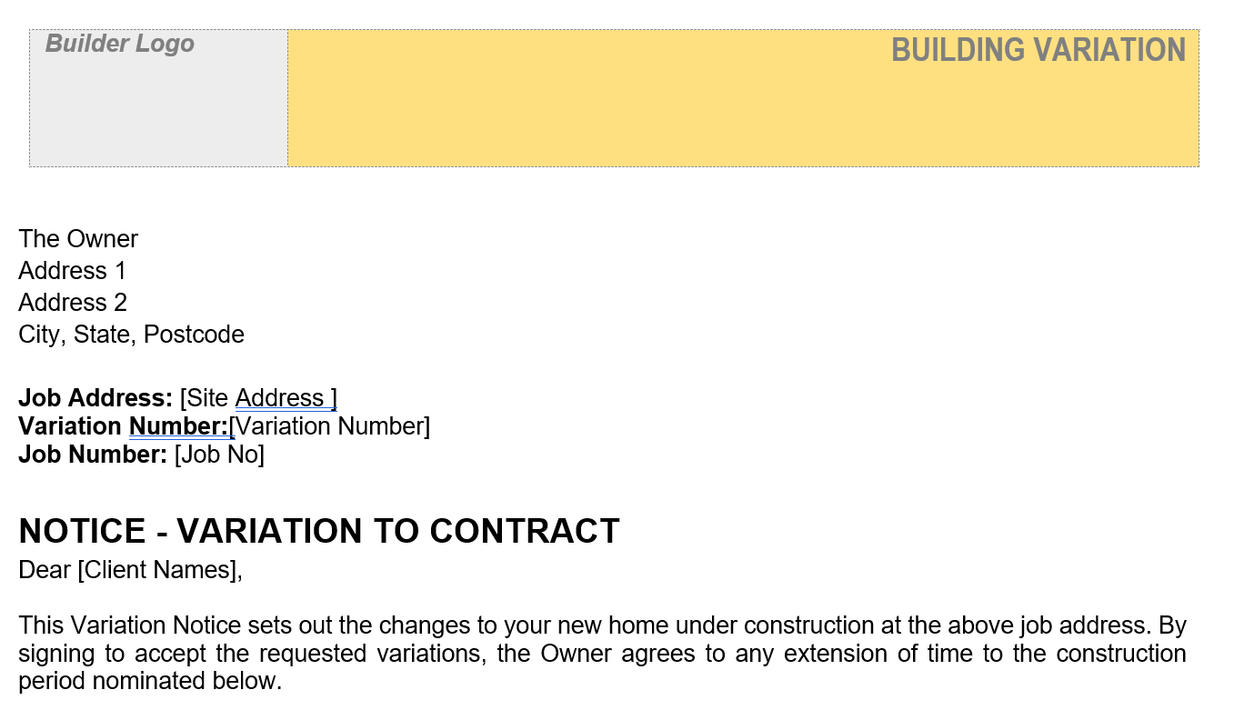 Issuing a post contract variation while the project is under construction will necessitate some different language and obligations on the client/s than for a post contract variation issued after the contract is signed but prior to the commencement of construction.