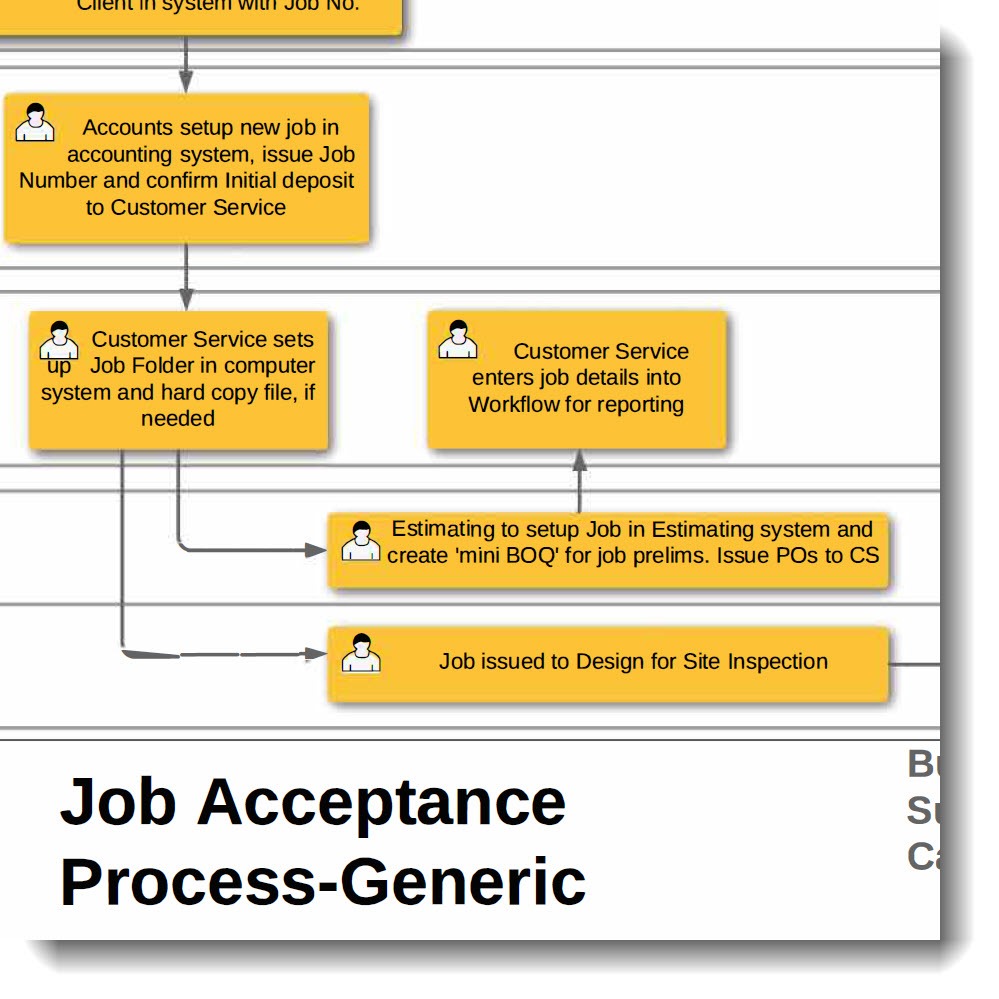 Business process mapping visually defines each of the main processes and systems that are used to efficiently operate your business. The process of undertaking the mapping can identify duplication, inefficiencies within your business and clarify who is responsible for the work.