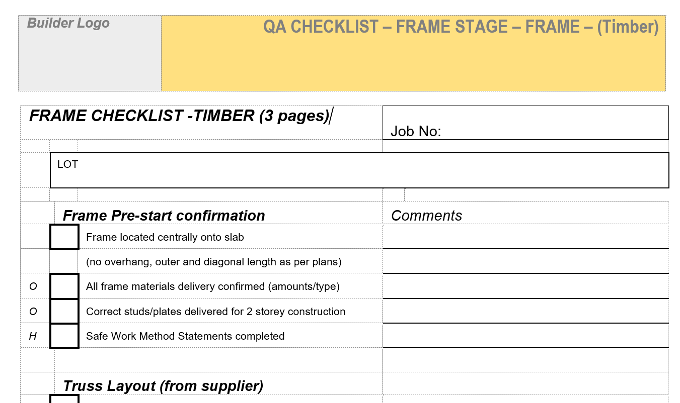 QA Checklist 13.03.04 Frame Stage - Frame [Timber]