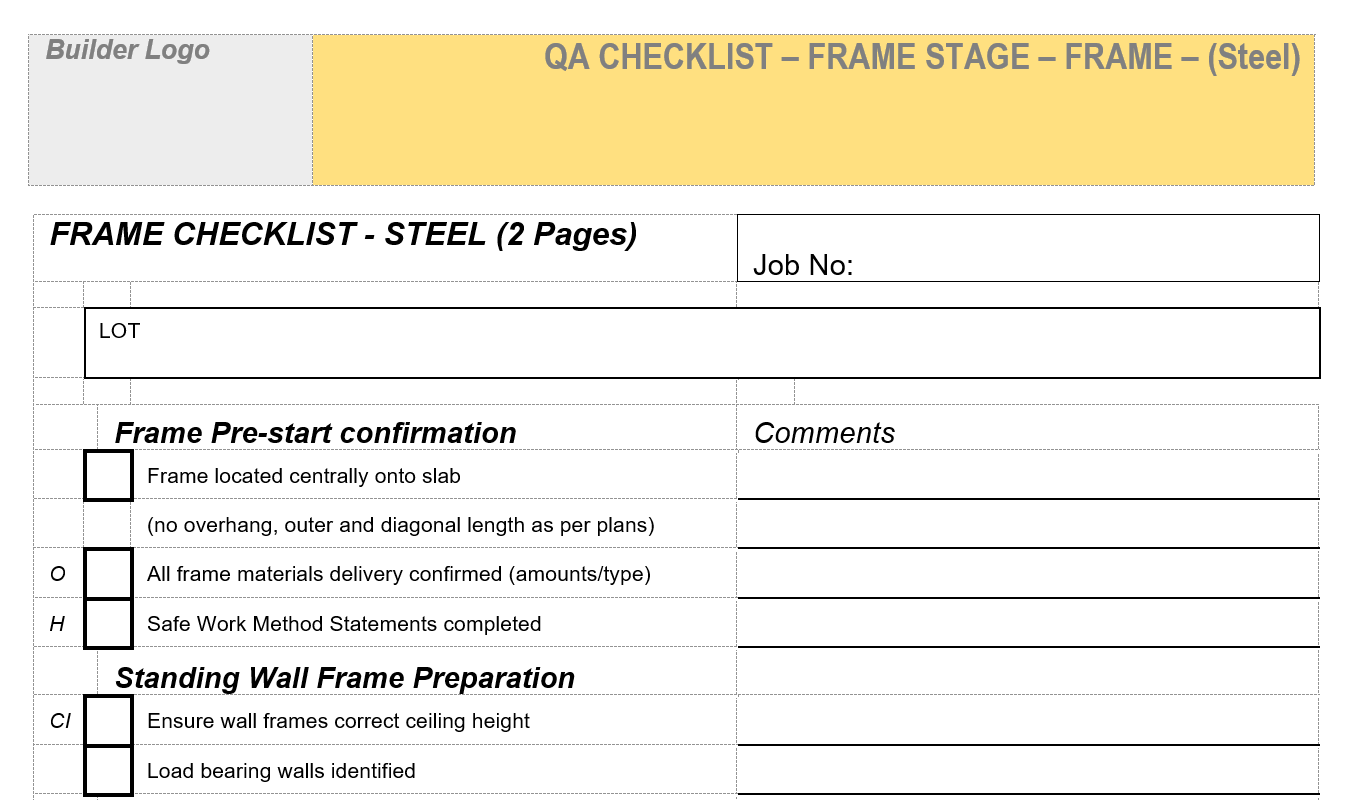 Checklist- 13.03.05-QA Checklist Frame Stage - Frame (Steel) V1 180620.docx