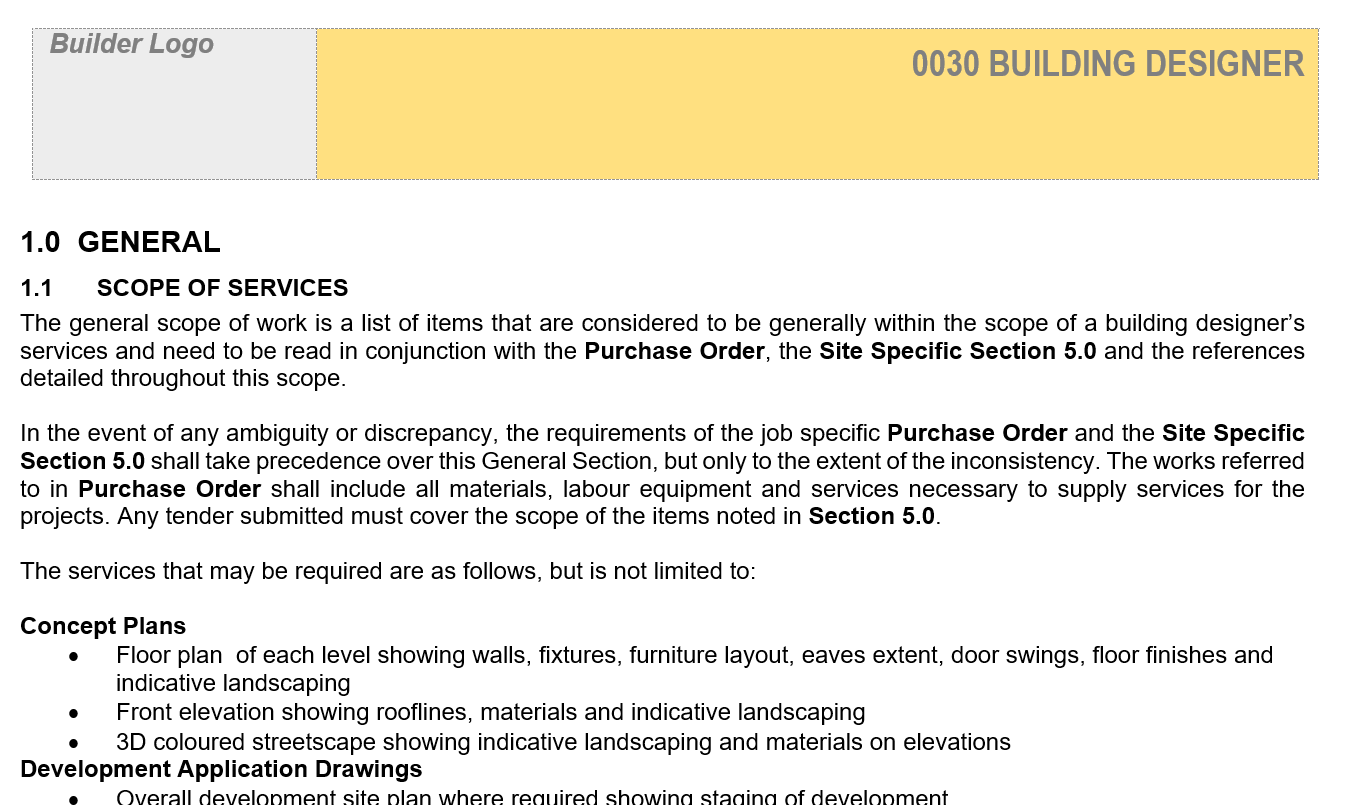 This Scope of Works sets out the extent of work and expectations of the standards and execution for the building design on projects.