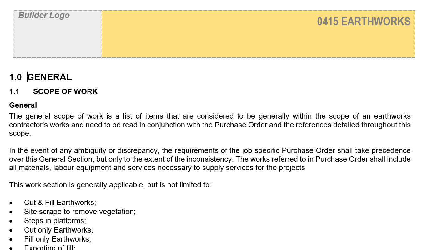 This Scope of Works sets out the extent of works and expected execution of the works in relation to all earthworks and site works on a project.