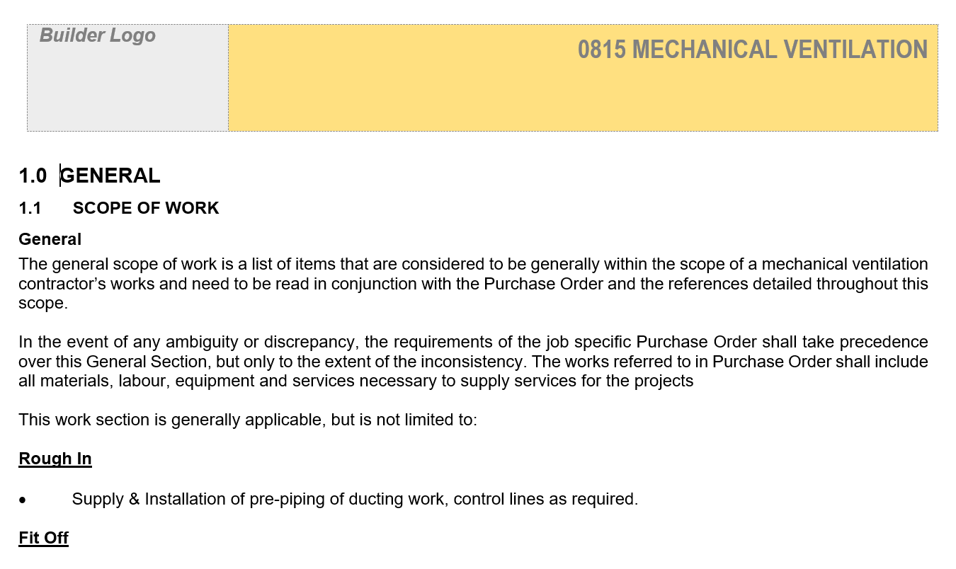 This Scope of Works sets out the extent of work and expectations of the workmanship and execution for the mechanical ventilation installations on projects.