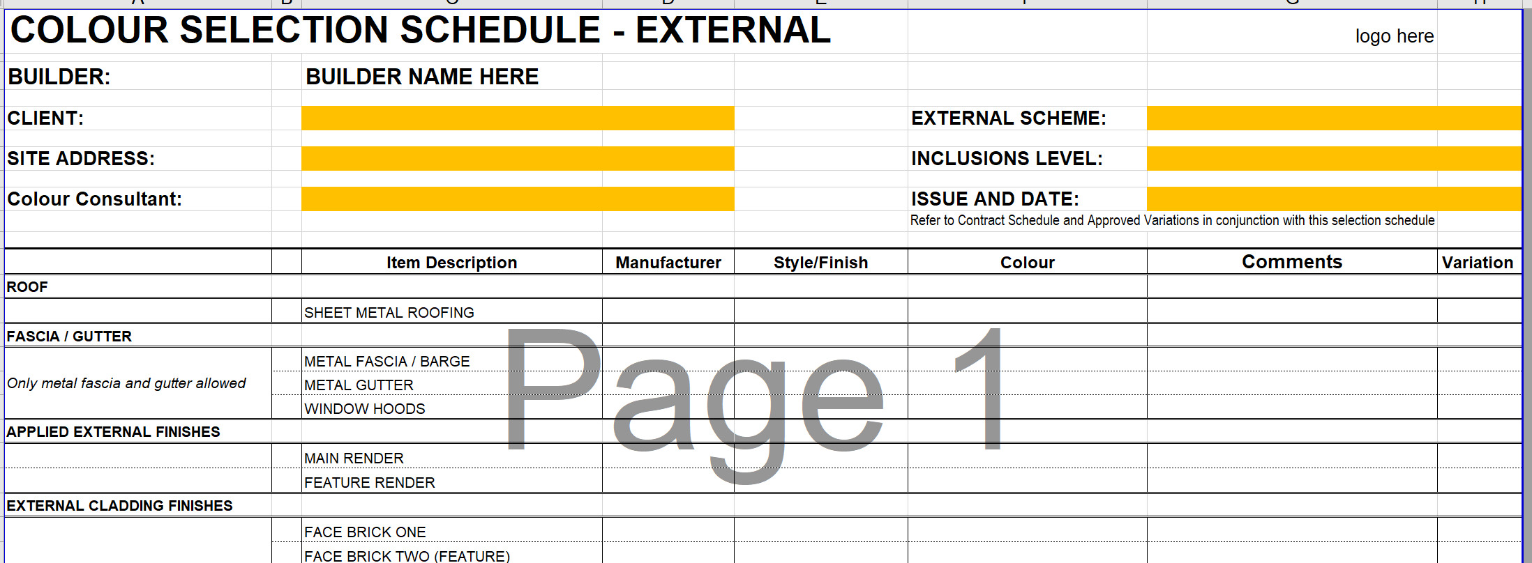 Template - 05.03 External Colour Selection Schedule