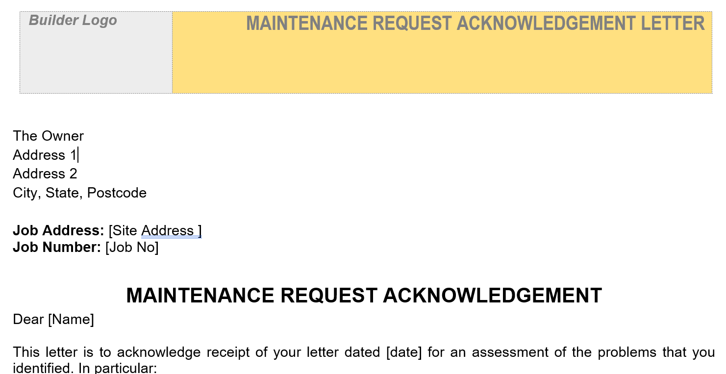 Template - 06.45 Maintenance Request Acknowledgement Letter