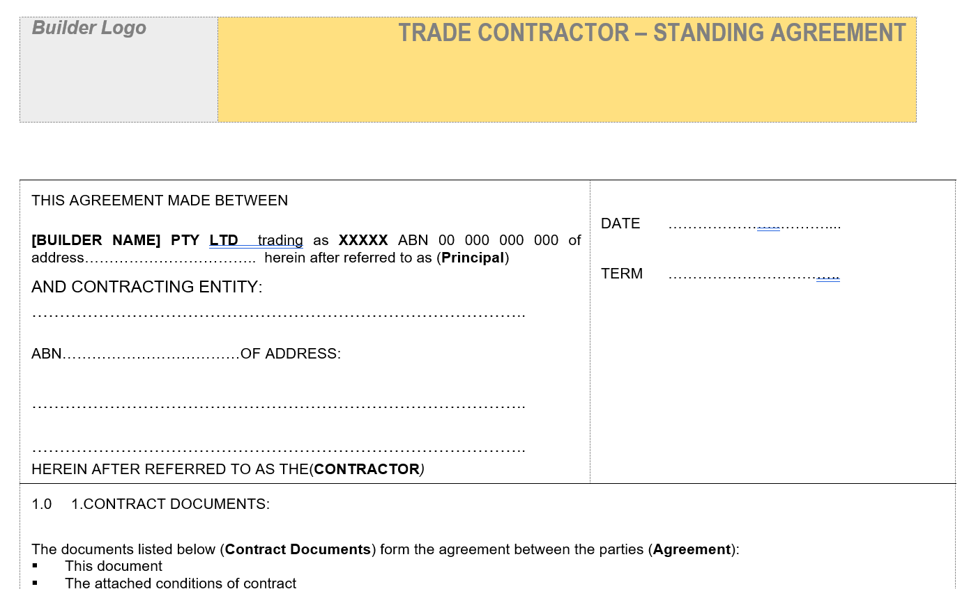 Template- 15.03 Trade Contractor -Standing Agreement.docx