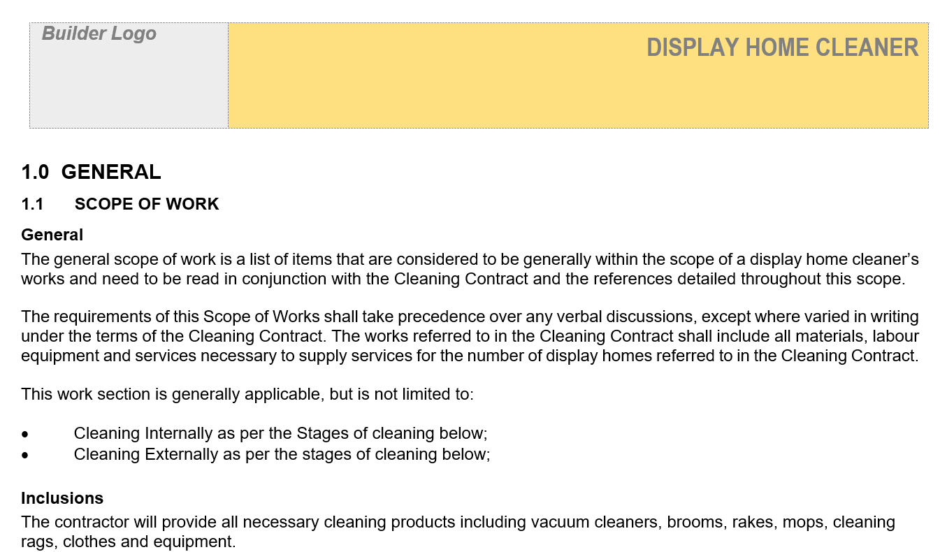 A good Scope of Work document will reinforce to your contractors that your company is also a professional business and clearly understands its quality standards. It will also ensure there is consistency across multiple contractors carrying out the same work.