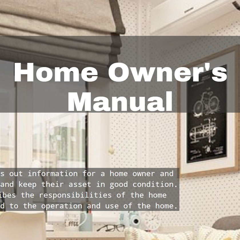 This template is for the development of a Home Owner's Manual. This would be used to educate new home owners on their obligations for maintenance required on their home Price incl GST